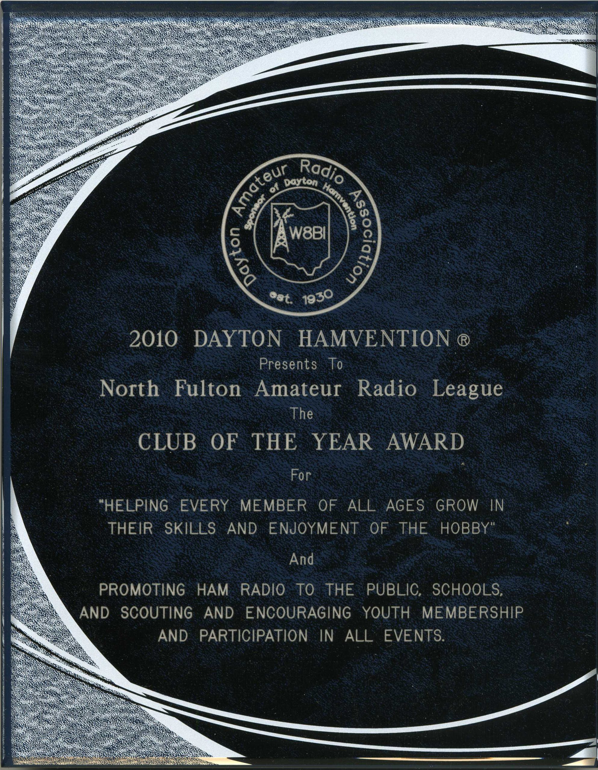 - The Club of the Year award coincides with Hamvention's 2010 theme - Amateur Radio Clubs Worldwide: the Lifeline.